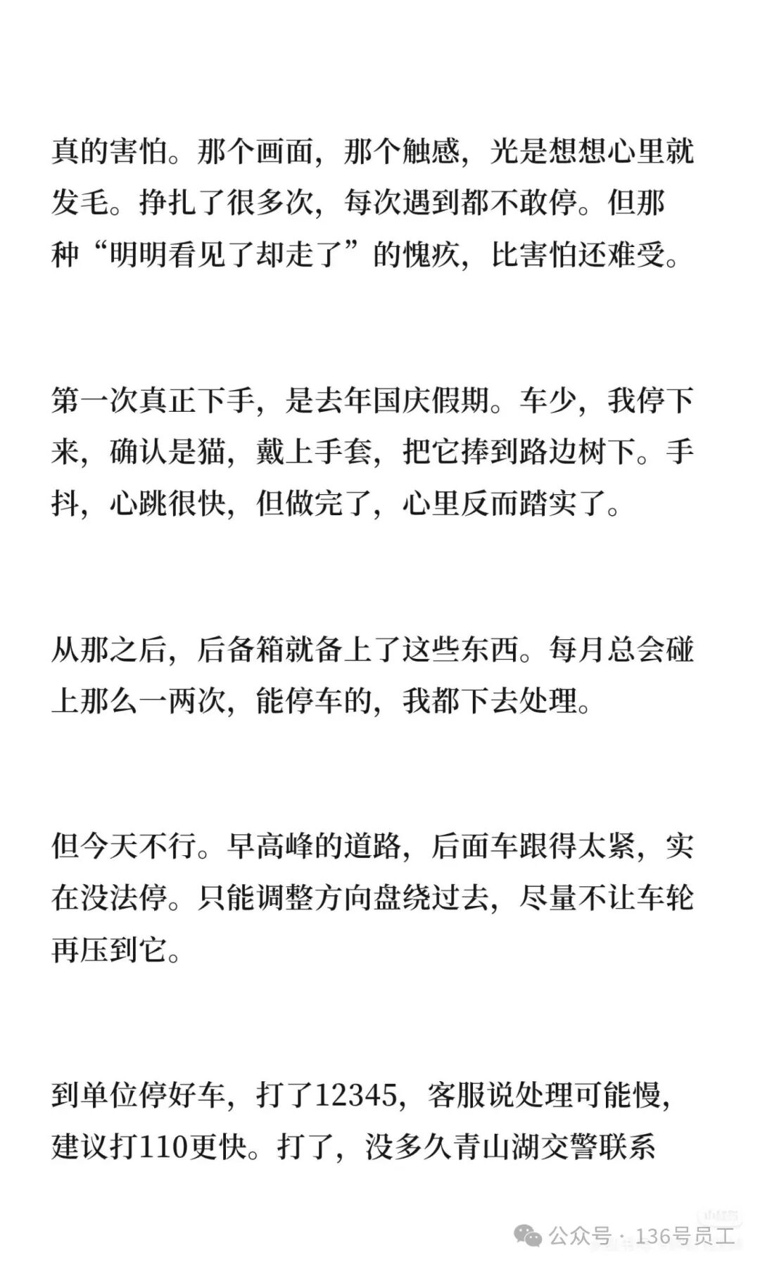 “我之前没有想到还有人会这么做。”这件事令她印象特别深刻,因为自己也养猫,渐渐萌生了这样的念头。她回忆,第一次真正下手是在去年国庆假期,在路上看到一只小猫因车祸躺地,当时车流较少,她将车停下来,戴上手套把它捧到路边树下。“虽然手在抖,心跳很快,但是做完了。”王女士的心里反而踏实了不少。