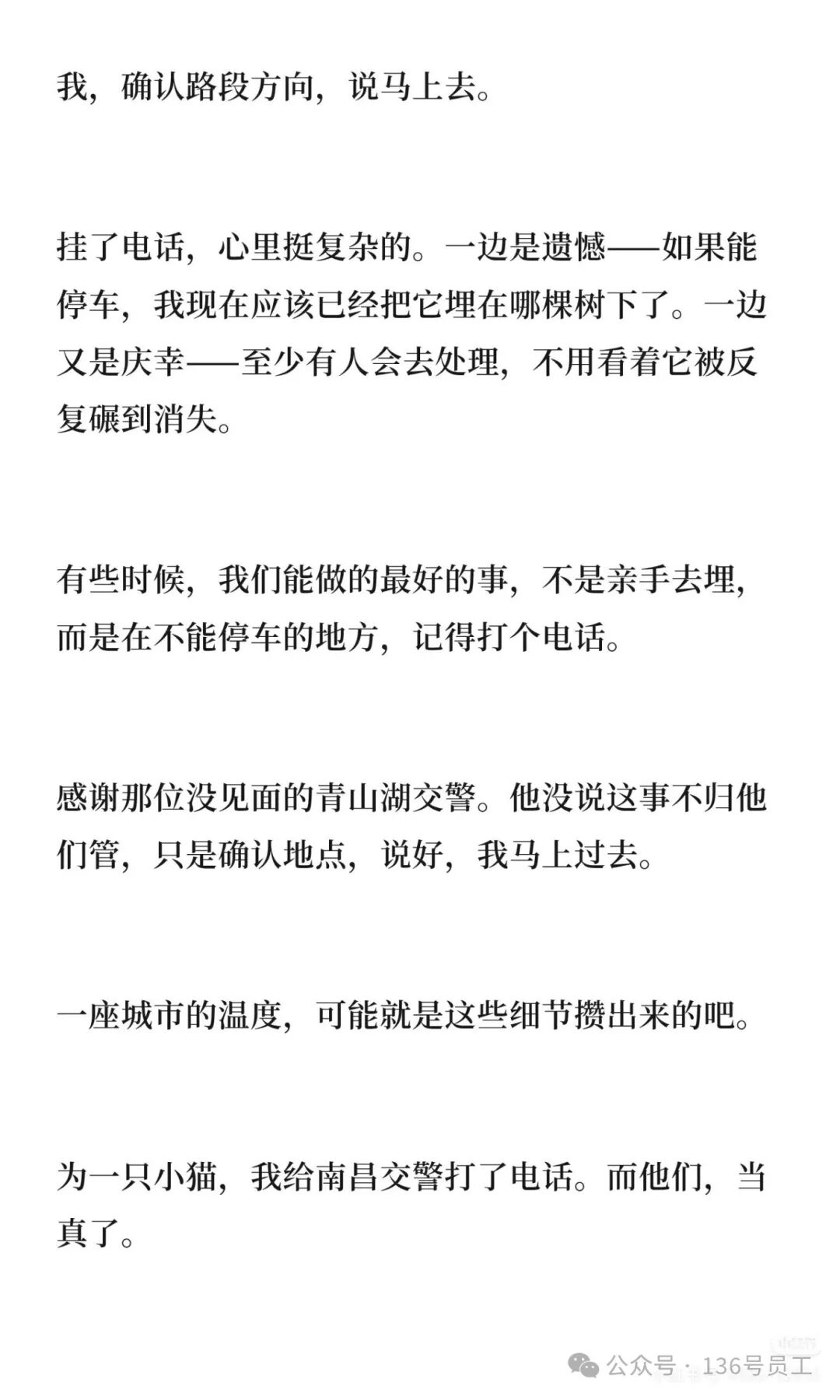 “一座城市的温度,可能就是这些细节攒出来的吧。为一只小猫,我给南昌交警打了电话。而他们,当真了。”近日,南昌市民王女士在社交平台讲述了自己的经历,路边偶遇的流浪动物车祸因为一通电话有了一个新的结局。