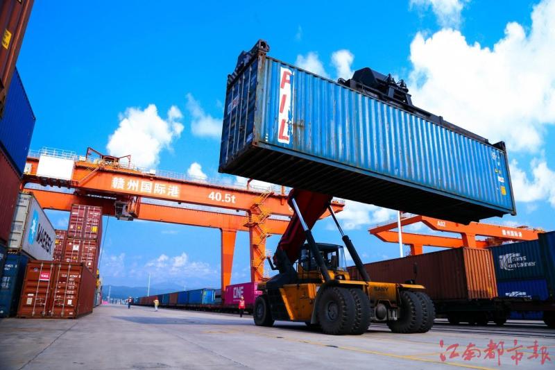 江南都市报讯 钟欢艺、全媒体记者刘火兵摄影报道:17日,记者从赣州国际陆港获悉,目前,赣州国际陆港与中国(赣州)跨境电子商务综合试验区、赣州综合保税区通过“三区合一”,在打造国际物流枢纽、发展枢纽经济、推动融湾战略方面实现了新的突破,与深圳盐田港、蛇口港、厦门港、广州港、珠海港、宁波港、上海港等沿海港口群,以及满洲里、二连浩特、霍尔果斯、阿拉山口、绥芬河等沿边口岸实现互联互通,与德国威廉港签约合作协议,积极建立中欧班列至欧洲港口再海运其他区域的铁海联运新物流运输模式。