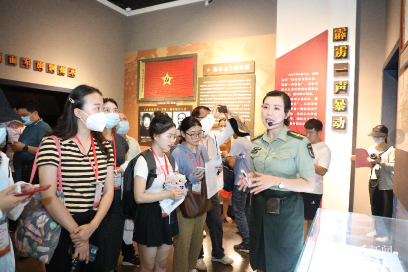 ▲采访团在秋收起义修水纪念馆参观采访。摄影丨胡麟兰