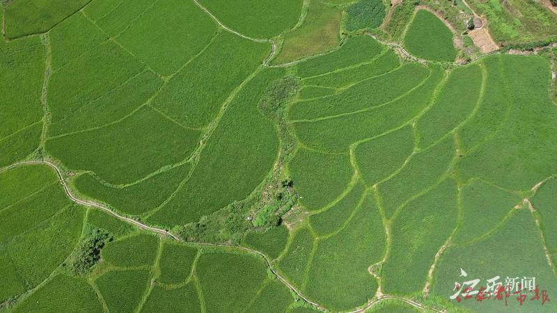 被青山环绕的高滩村,抬眼处处满目青翠,梯田沿着山脉层层而下,几片粉妆玉砌的莲花荷叶,迎着夏风徐徐摇曳。这里拥有莲花县最大的成片水稻田垅,1.1万余亩的稻田每到春秋时节,油菜花海和金黄稻田相互交织、美不胜收。在高滩村的吉内得国家稻田公园,记者看到不少游客在乡间小路上驻足赏花,在稻田餐厅品尝原生态绿色美味。依托优越的富硒生态、美丽的自然风光、丰富的人文景观,江西吉内得实业有限公司因地制宜,发展水稻种子研发、种植和加工销售、畜禽养殖、生态农旅等农业产业。
