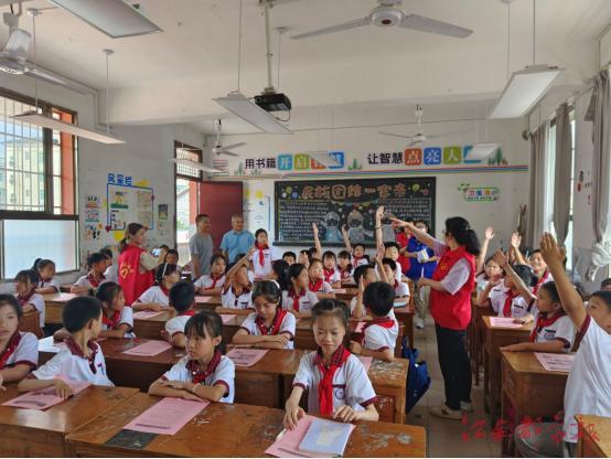 孩子们热情高涨,积极举手发言,现场气氛十分热烈。活动现场,工作人员还为学生发放了防溺水宣传教育彩页、笔记本、涂改带等文具,嘱咐他们提高安全意识,保护自己,快乐成长。