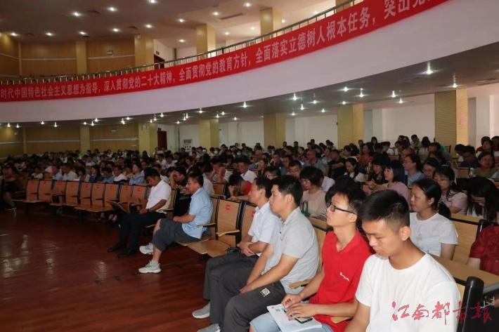 赣州三中党委副书记、校长王玲以“攻坚克难,传承创新;踏上新征程,走好新赛道”为题作讲话,并要求全体教师,要多方协作,积极建树,提升学校办学内涵和名校影响力;立德树人,五育并举,营造三全育人氛围;强化精细化管理、过程管理和目标管理,提升管理效能;强化学习、积极参赛,历练过硬本领,提升学校办学品质。同时,定下了2023-2024新学年工作目标。