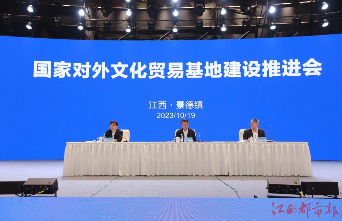江南都市报讯 全媒体记者余文斌摄影报道:10月19日,国家对外文化贸易基地建设推进会在景德镇市举行。推进会上公布了新一批国家对外文化贸易基地名单,并为衡水、哈尔滨、上海、南京、杭州、景德镇、济南、广州、深圳、三亚、自贡、伊犁等 12 家新一批国家对外文化贸易基地授牌。