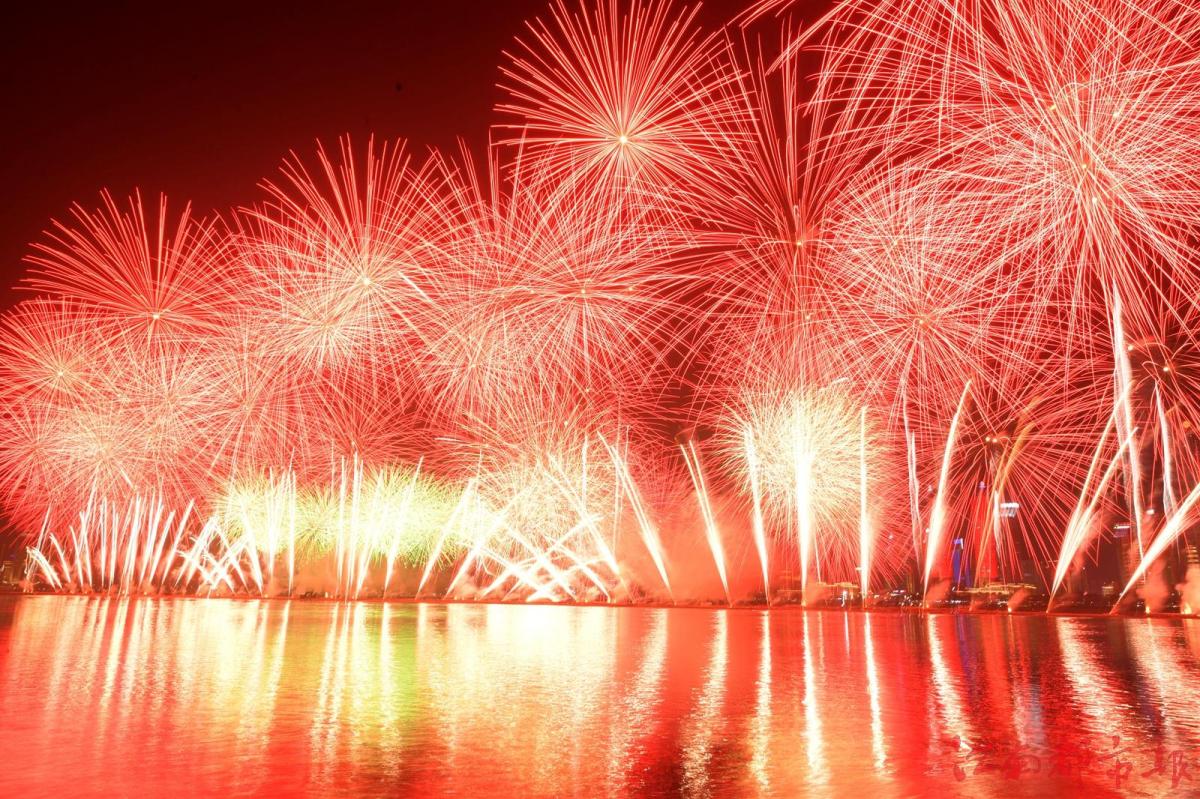 江南都市报讯 全媒体记者许南平摄影报道:火树银花,绽放赣江之畔;流光溢彩,辉映英雄之城。2月10日大年初一晚8时,“龙腾盛世 花开满江——2024年南昌市迎春烟花晚会”在赣江之心老官洲上空浪漫上演。一团团、一簇簇烟花在空中飘舞,展示着英雄城日新月异的繁荣活力。美丽、壮观、大气的烟花景观,勾勒出一幅幅绚丽和谐的美好图景,也映照出南昌人的“年味仪式感”和对未来生活的美好期待。火树银花漫天璀璨,为现场八十万市民朋友们带来一场精妙绝伦的视听盛宴。记者在现场看到,8982发礼花弹、2400架无人机、亚洲最大音乐喷泉、一江两岸灯光秀相结合,展现“物华天宝,人杰地灵,天下英雄城——南昌”的新时代风貌。本报记者分三路出击,完美地将层层绽放的烟花“定格”。