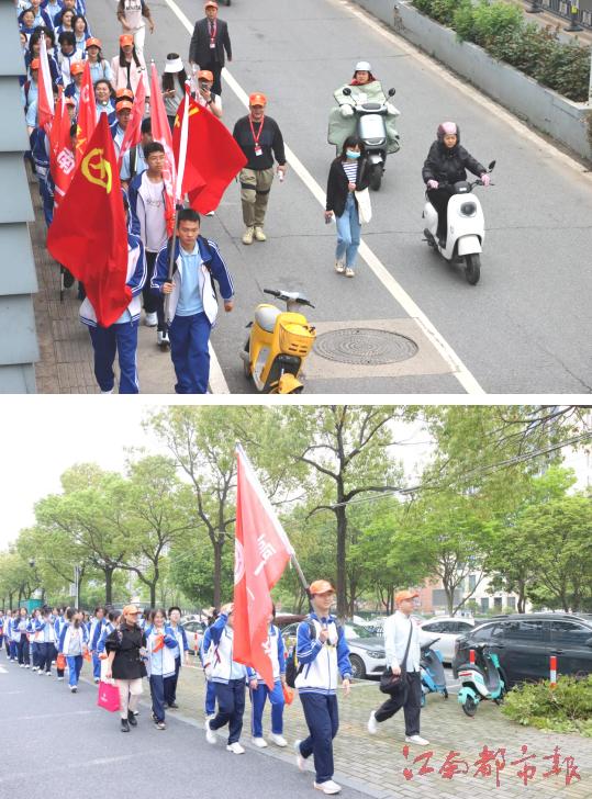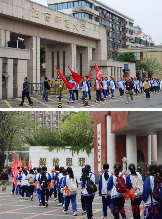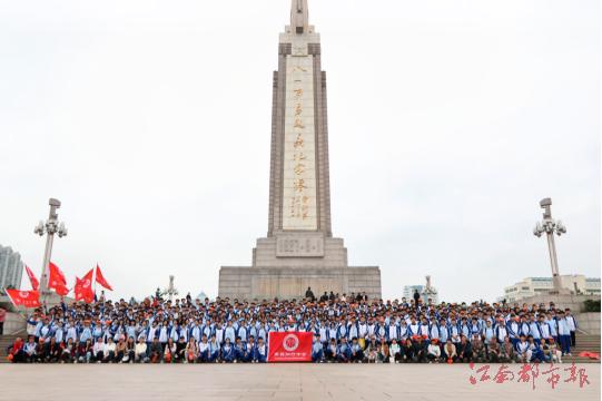 上午7时30分,远足队伍从水光潋滟的艾溪湖畔出发,途经文化底蕴厚重的江西师大等高等学府,南昌地标八一广场(瞻仰“八一南昌起义纪念碑”),目的地南昌新四军军部旧址陈列馆。全程20多公里。