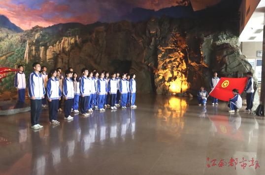 学生代表铿锵发言:今天重温了那段艰苦卓绝的峥嵘岁月,加深了那一页刻骨铭心的红色记忆,缅怀了新四军光耀千秋的丰功伟绩,明白了今天的幸福生活来之不易;决心学习新四军勇猛顽强的优良作风,传承新四军敢打必胜的铁军精神,弘扬我党活筋壮骨的红色文化,树牢报效祖国的雄心壮志!