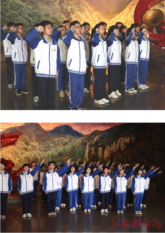 参观学习后,同学们通过现场活动方式表达怀念与感恩之情、传承与报效之志。重温入团誓词,坚定有力;朗诵烈士诗篇,声情并茂;分享红色故事,可歌可泣;齐唱“强军战歌”,豪迈高亢!