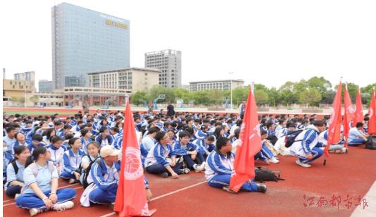 云销雨霁万物净,风恬日暖荡春光。出发前,高一年级全体师生在操场集合举行出征誓师大会。