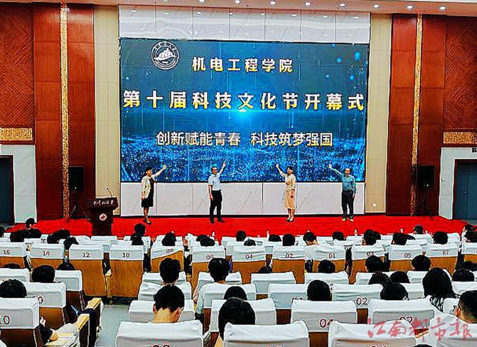江南都市报讯 曾红、黄秀兰、全媒体记者许南平摄影报道:5月7日,记者从井冈山大学获悉,为不断增强学生科技创新意识,进一步提升学生实践技能,激发学生的学习兴趣。机电工程学院第十届科技文化节日前在新图书馆北侧报告厅开幕。校党委常委、副校长敖四江出席开幕式并致辞,校团委书记肖晓、学院全体班子成员、各系主任、辅导员及师生代表共计260余人参加活动。
