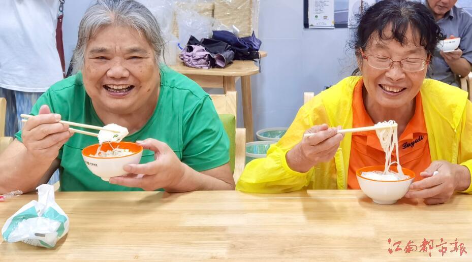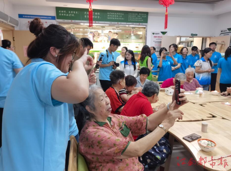 现场,窗外的雨声哗啦啦地响,窗内的笑声此起彼伏,大学生志愿者带领全场唱起《十送红歌》,还为老人们进行防诈、健康知识宣讲,随后一碗碗长寿面端上桌,党员们一人一碗,他们用这种特殊的方式为党庆生、向党表白。今年80岁的老党员胡静奶奶兴奋地告诉记者,为了参加今天的活动,她特意早晨七点多就冒雨从滕王阁附近赶来,因为这样为党庆生的活动很有意义,现场她开心地和年轻的大学生们合影互动。吃完长寿面,胡奶奶和幸福大妈合唱团的团员们一起忙着排练,她透露,下午将与北城幼儿园的孩子们联谊,演唱歌曲《领航》。江西服装学院的预备党员刘文鑫,第一次以党员的身份参加社区志愿服务活动,他表示,从老人们幸福的笑容中理解了如何更好地为人民服务,“我要接过老党员的接力棒,争做新时代的接班人”。