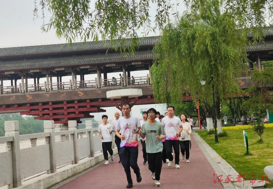 江南都市报讯 全媒体记者赵琼摄影报道:“加油!加油!”每周日清晨,在江西吉安市风雨廊桥旁,来往的路人常常能看到,视障人士在大学生陪同下跑步。不少跑团成员已经可以完成5公里、10公里,甚至半程马拉松。成立2年来,红五星跑团让更多视障人士走出家门,享受奔跑的快乐,拿下了400余块马拉松奖牌。