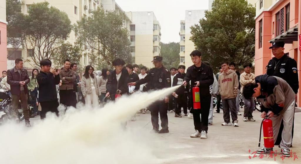 江南都市报讯 刘莉、黄清优、全媒体记者许南平摄影报道:为进一步加强学校安全工作,增强学生的消防安全意识和对火灾的应急处理能力,11月21日下午,井冈山大学机电工程学院在学生宿舍40栋宿舍楼开展了消防安全教育培训和消防演练活动。学院学管人员、各年级班主任和辅导员及300余名学生参与活动。