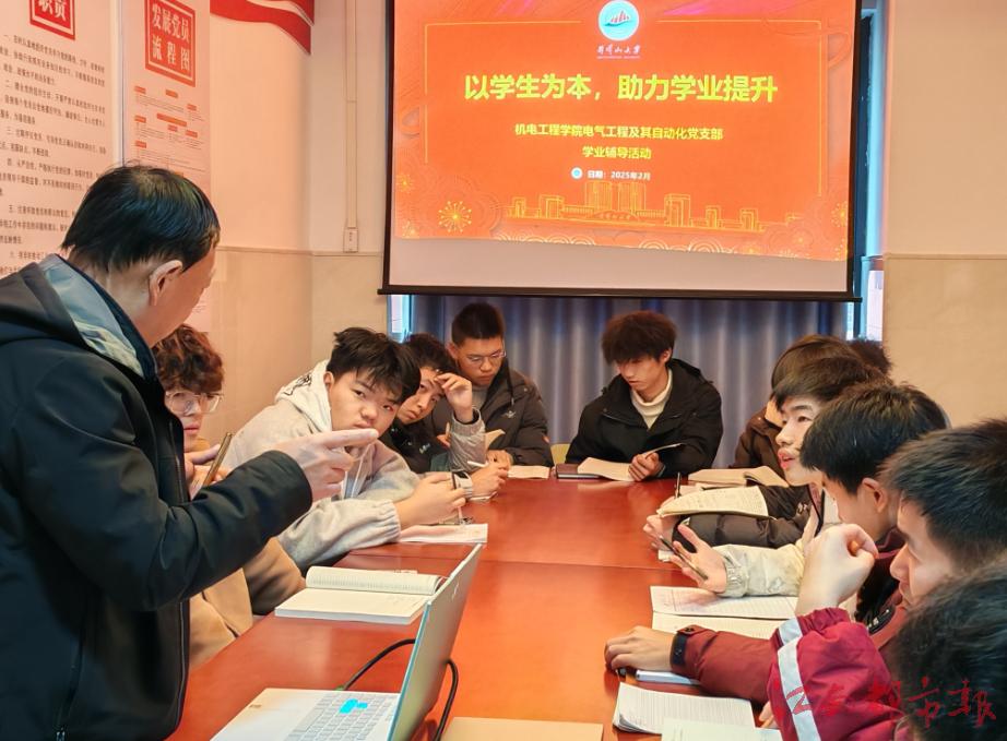江南都市报讯 刘莉、傅小丹、全媒体记者许南平摄影报道:2月27日,记者从井冈山大学获悉,为贯彻落实学校高质量发展工作部署,进一步激发学生学习兴趣,帮助学生有效克服学业难题,该大学机电工程学院组织党员教师在学生社区40栋党员活动室和博士小讲堂,开展主题为“以学生为本,助力学业提升”的学业提升活动,为学生提供全方位、专业化的学业辅导。