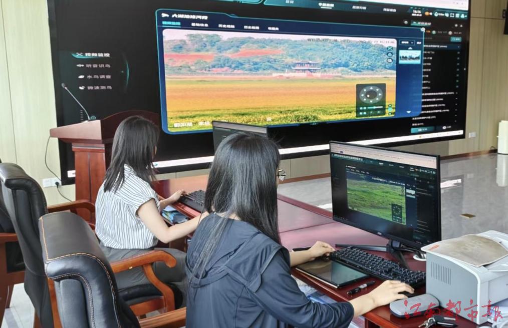 据悉,该平台在鄱阳湖重点区域建设有视频监控、环境监测、听音识鸟、雷达测鸟、声呐探豚、自动巡护无人机等感知设备,基本实现对鄱阳湖最重要生态区域的覆盖和全天候监测。“平台还具有鄱阳湖湿地数字孪生世界、人工智能识鸟、遥感面积监测、环境健康评价等多项技术创新点,现在我们的管理人员可以随时通过电脑端实现对鄱阳湖重点区域的全天候监测。”李朝阳说。