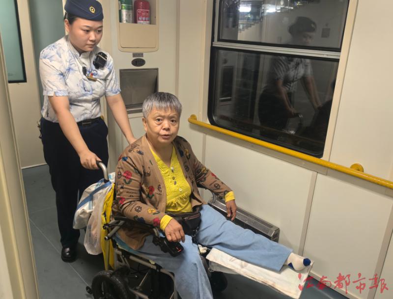 进入软卧包厢后,乘务员帮重点旅客安置好行李物品,又仔细地为她讲解了包厢内各种设施的使用方法,包括如何调节空调温度、呼叫乘务员等,确保重点旅客在旅途中能舒适、方便地使用各项设备。一路上,列车工作人员对吴女士一家格外关照。到了用餐时间,乘务员主动帮忙去餐车打来可口的饭菜,并细心地为重点旅客准备了一杯温水,方便她服药。在列车行驶过程中,她还不时过来询问重点旅客是否需要帮助,或是有什么不舒服的地方。随着列车即将抵达目的地,乘务员提前为重点旅客的下车做好了准备。她再次来到包厢,帮助重点旅客收拾好行李,然后搀扶着她慢慢向车门走去。为了让重点旅客下车更方便,列车工作人员提前与站台工作人员沟通,准备了轮椅在车门口等候。当列车缓缓停下,乘务员先将行李拿下车交给重点旅客的家人,然后稳稳地搀扶着她坐到轮椅上,并细心地叮嘱吴女士的家人一些注意事项。吴女士满含感激地对方晓说:“乘务员,这一路多亏了你,你的服务太周到了,让我这趟旅途心里特别温暖。”