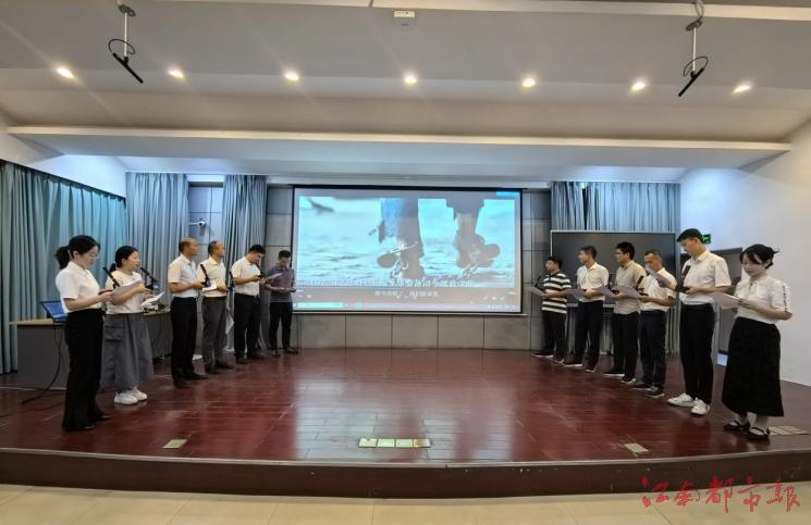 培训班第一组学员通过视频配乐、人物对话等形式集体朗诵了《觉醒年代》,从众学子异乡忧祖国,到陈独秀、李大钊等革命先驱在新文化运动中的奋斗与贡献,再到五四运动的爆发与影响,全面展现了那个时代的社会变革与思想觉醒,让全体学员更加深情地回顾那段历史,深入了解那个时代的风云变幻,感受革命先辈们的热血与激情。