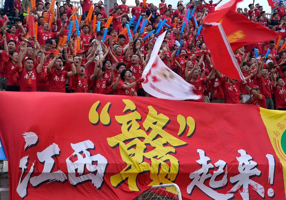 7月20日,南昌球迷为主队加油助威。新华社记者 万象 摄