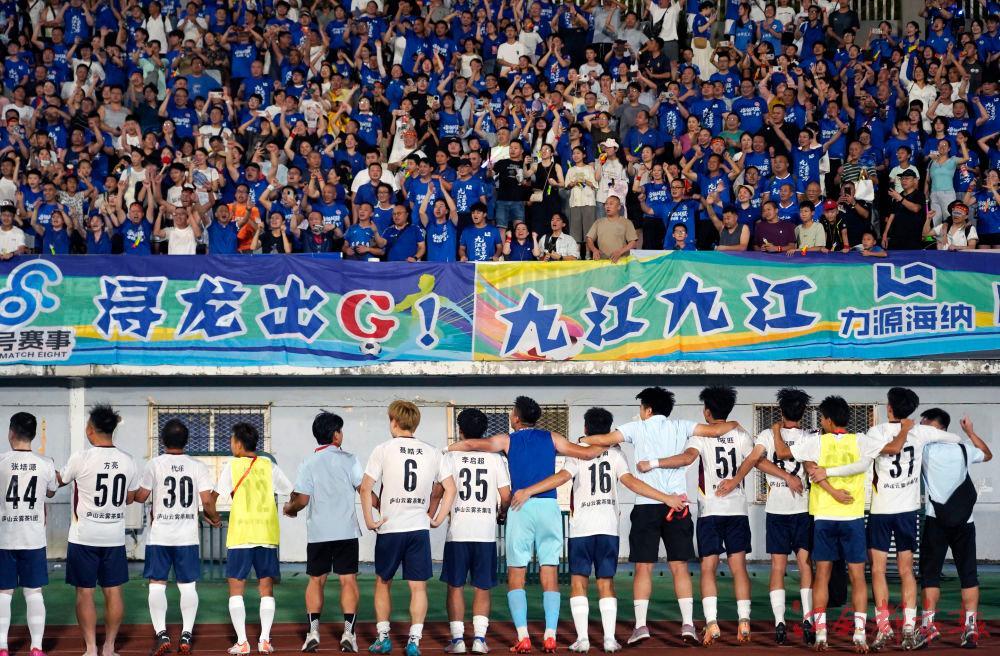 7月20日,九江队球员在赛后与球迷互动。新华社记者 万象 摄