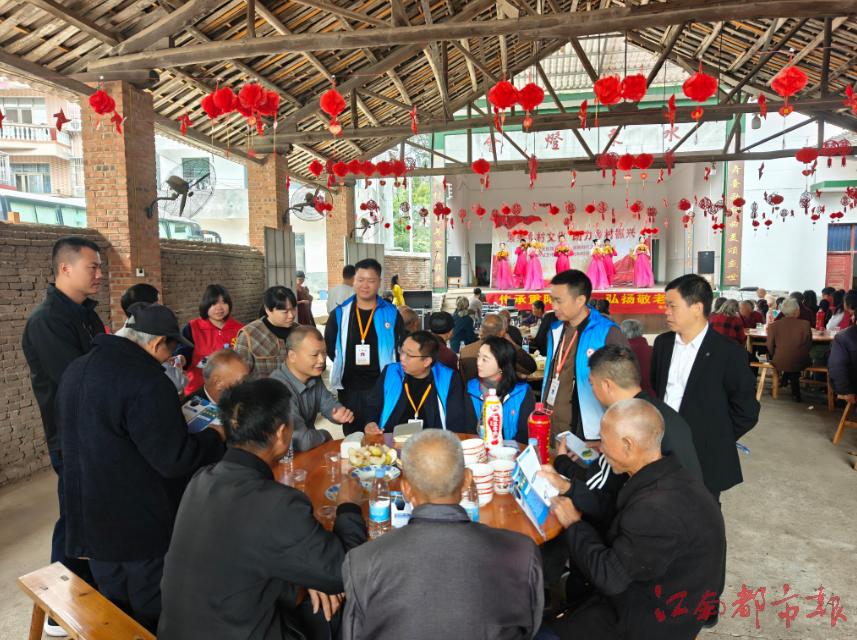 为深入推动“四个100”文化导师活动扎根基层,深化“老戏新唱”文化体制改革,强化校地协同育人成效,助力乡村文化振兴,一场主题为“‘老戏新唱’传文明 文明新风谱新篇”的综合文化服务活动于10月25日在宁都县梅江街道水东村等地精彩呈现,江西省赣南采茶戏剧团的义演为当地群众献上了一场丰盛的文化盛宴。省“四个100”新闻导师张祖珍、宣讲导师余娓娓、文艺导师黎平平、非遗导师官海滨到场参加活动。