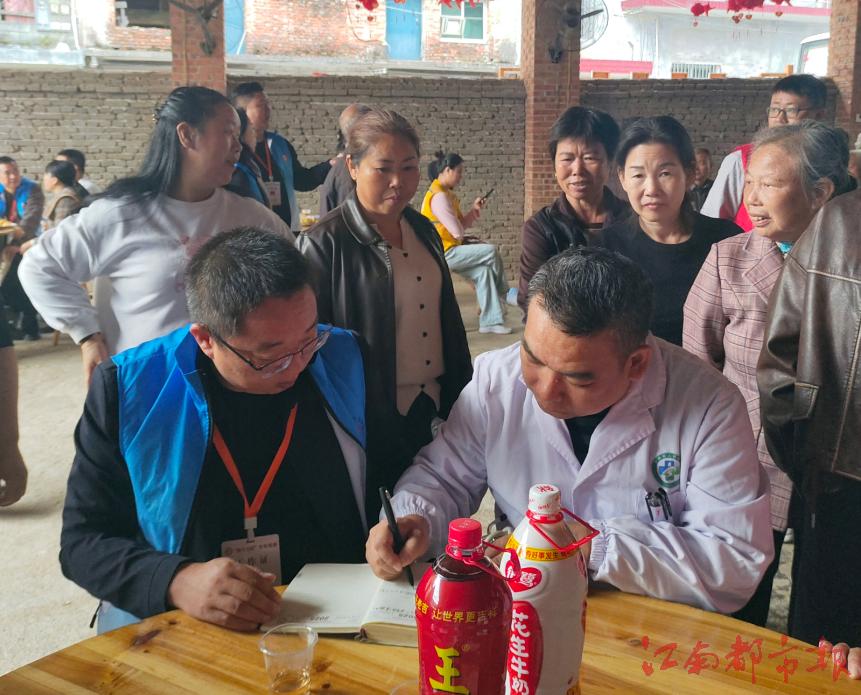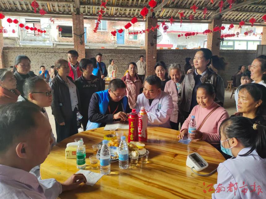 精彩的演出深深打动了现场观众。梅江街道宣传委员沈婷观看后表示:“这样高水平的专业院团把戏送到家门口,特别是看到我们熟悉的采茶戏被演绎得这么精彩,老百姓特别开心,极大地丰富了大家的精神文化生活。”水东村村民彭小平也兴奋地分享感受:“很久没看到这么‘过瘾’的现场大戏了,特别是《店嫂说媒》,又好笑又有味道,希望这样的活动能多来我们村!”演出之余,校地协作的综合服务同步展开。 宁都县人民医院的医护人员在刘珊珊的带领下,现场为村民开展义诊活动,将健康服务送到群众身边,体现了此次“三下乡”活动“文化惠民”与“健康为民”相结合的综合效益。本次“‘老戏新唱’传文明 文明新风谱新篇”“四个100”暨校地协作三下乡活动的成功举办,是校地联动、资源整合助力乡村文化振兴的生动实践,不仅为基层群众带来了高水平的艺术享受,也有效传承和发展了地方优秀传统文化,更通过贴心的服务温暖了民心,为培育文明乡风、激发乡村文化内生动力谱写了新篇章。