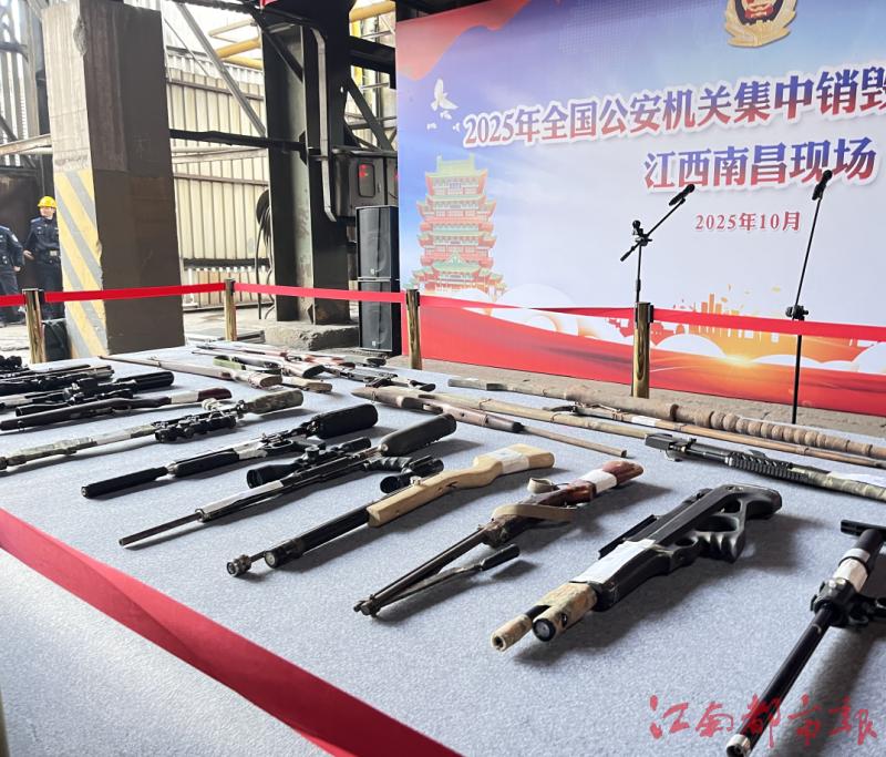 “南昌市公安局在此次集中活动中,共销毁104支非法枪支,107支仿真枪,833把管制刀具,29把弓弩,从源头消除非法枪支安全隐患,保障人民群众生命财产安全。”南昌市公安局治安管理支队危爆大队张斌提醒广大群众,如持有非法枪支弹药、管制刀具,请尽快上交到最近的派出所,或拨打110。