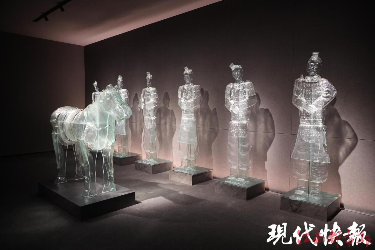 作为馆内“明星展区”,世界第四大琉璃雕塑展厅内,镇馆之宝《兵马俑》琉璃雕塑格外吸睛:六尊琉璃兵马俑与一匹琉璃马组成的艺术群像,不仅是世界最大琉璃马雕塑,更以剔透材质复刻出历史的厚重感,阳光透过玻璃穹顶洒在琉璃作品上,折射出流光溢彩的视觉效果。在郭宁看来,老厂房的工业风与琉璃的现代感碰撞,让艺术有了更生动的表达。