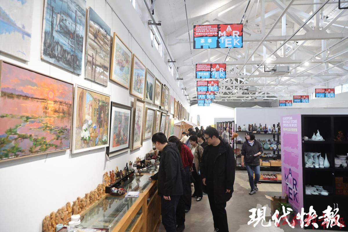 相邻的国内外艺术名家油画艺术展厅内,前不久举办了“一城山水 如画无锡”油画艺术展,来自白俄罗斯、土耳其、法国、泰国等20余位艺术家亲临现场参加;非遗(惠山泥人)展示厅则充满“锡味”,憨态可掬的“大阿福”、复刻无锡老市井的泥人场景,让媒体团直观感受到无锡非遗的鲜活生命力。中古艺术货仓内几十万件海外回流陶瓷、东亚书画错落陈列,形成“艺术欣赏—休闲社交—文化消费”的完整体验链。