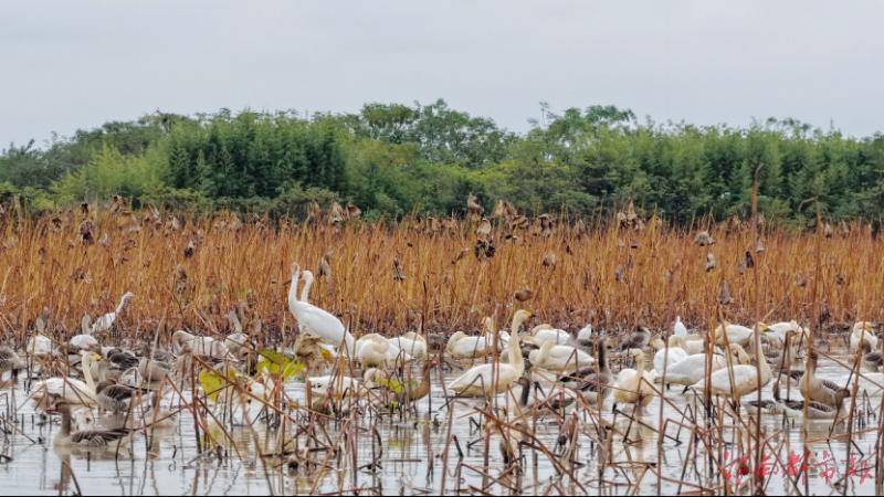 作为拥有两处国际重要湿地的生态宝地,鄱阳湖区被誉为全球近九成白鹤种群越冬的“首选家园”。这里广阔的湿地生态系统、丰富的鱼虾螺蚌及农作物遗存,为迁徙候鸟提供了充足的食物补给与安全的栖息环境。近年来,江西持续推进生态保护,通过退圩还湖、生态保水、常态化巡护与专项监测等一系列举措,不断优化湿地修复与候鸟栖息地质量,使鄱阳湖成为候鸟迁徙途中名副其实的“安全驿站”。