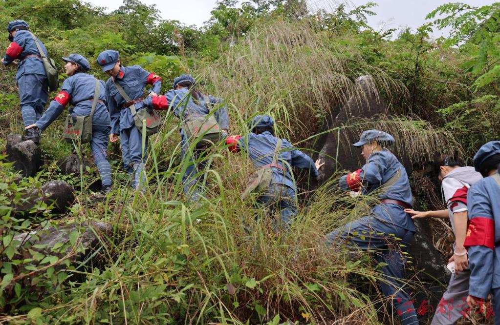 队伍沿着长征步道徒步经过白岩观、油榨房。师生们背着行囊,虽山路崎岖,但同学们相互鼓励、彼此扶持,既锻炼了体魄,又磨砺了意志。