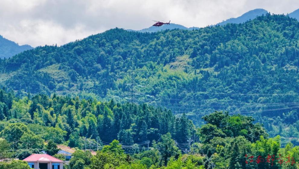 图为省送变电公司采用直升机开展500千伏输电线路带电消缺作业