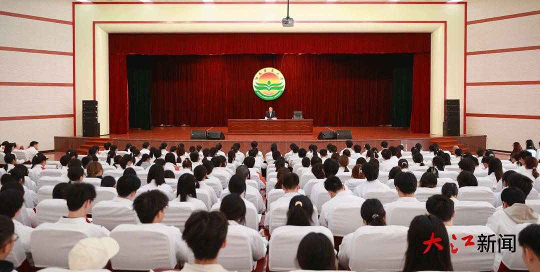 尹弘结合国内外形势,深刻阐述党的二十届四中全会的重大意义、精神内涵。他指出,这次全会是乘势而上、接续推进中国式现代化建设的又一次总动员、总部署,最重要的成果就是审议通过了“十五五”规划建议。我们要深刻领会全会精神,牢牢把握“十五五”时期在基本实现社会主义现代化进程中具有承前启后的重要地位,深刻认识“十五五”时期我国发展处于战略机遇和风险挑战并存、不确定难预料因素增多的时期,努力推动事关中国式现代化全局的战略任务取得重大突破,确保基本实现社会主义现代化取得决定性进展。尹弘立足江西省情和发展实际,结合江西农业大学特点,围绕“加快农业农村现代化、扎实推进乡村全面振兴”重大战略任务,从粮食安全、农业产业化、农业科技现代化、乡村建设等方面与广大师生深入交流。他强调,农业农村现代化关系中国式现代化全局和成色。江西是传统农业省份,要准确把握党中央加快推进农业农村现代化的战略考量和实践要求,充分发挥农业资源优势,加快农业农村现代化步伐,全力以赴建设农业强省。