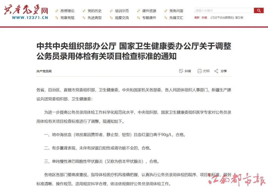 曾几何时,公务员体检标准如同“健康标尺”,将无数能力出众却因轻微身体指标异常者挡在门外。地中海贫血携带者血红蛋白正常却被拒,多囊肾无症状者因潜在风险遭淘汰,桥本甲状腺炎患者因免疫指标波动失机会……这些“被健康绑架”的遗憾,折射出的是招录制度中“宁错勿缺”的保守思维。如今,新标准以“血红蛋白高于90g/L”“未伴尿蛋白阳性或肾功能不全”“单纯慢性炎症”等量化指标划清边界,既守住岗位适配底线,又为“无碍履职”的轻微异常者打开一扇窗。这不是标准的降低,而是科学的校准——用精准分级替代简单否定,用风险评估取代盲目排斥!