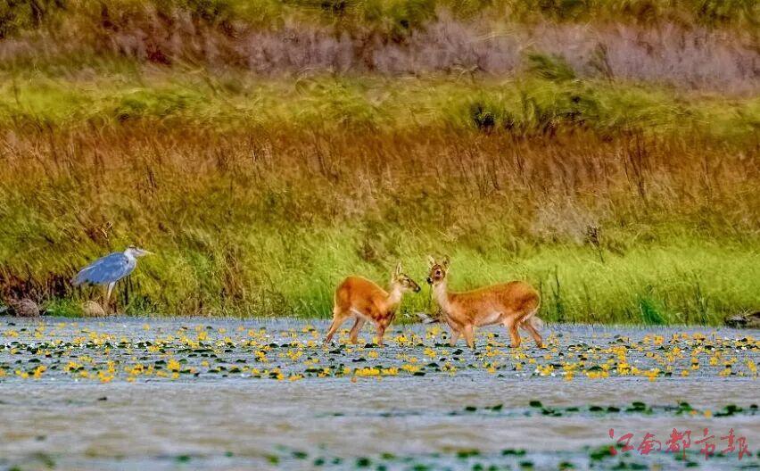 鄱阳湖候鸟保护区朱市湖几只河麂悠然涉水。郑文斌 摄