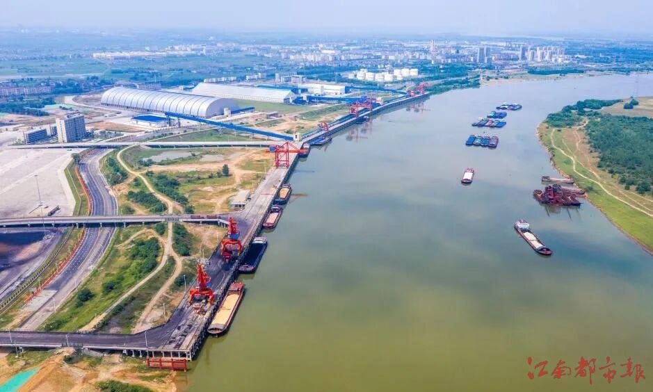 船舶在江西省宜春港樟树港区河西作业区综合码头装卸货物。周亮摄