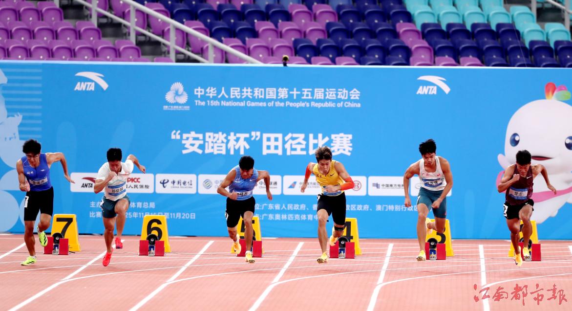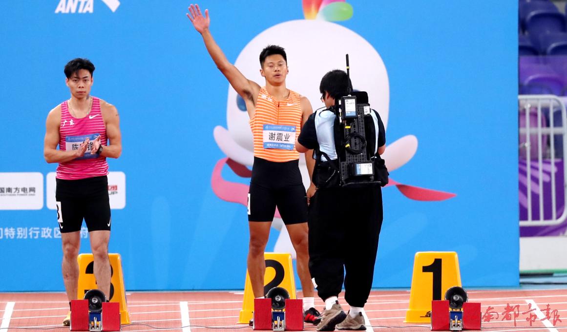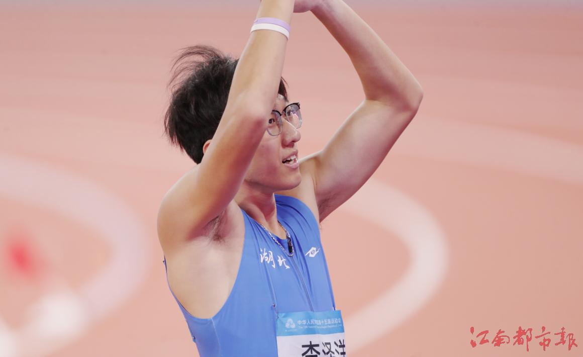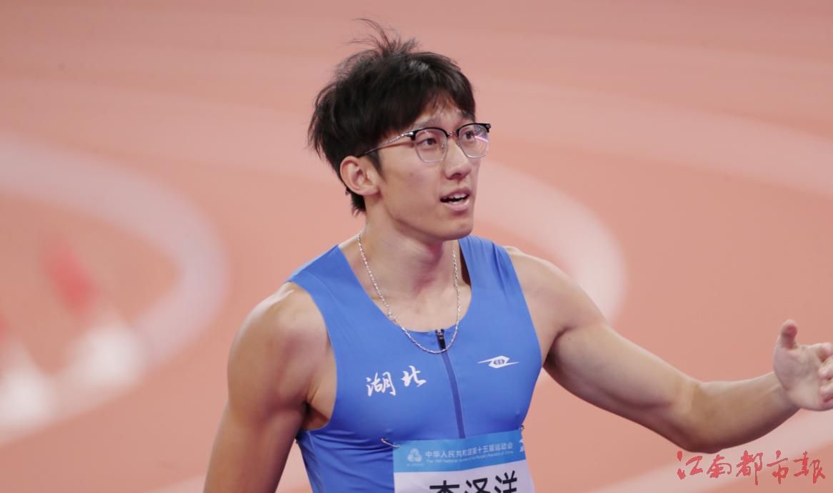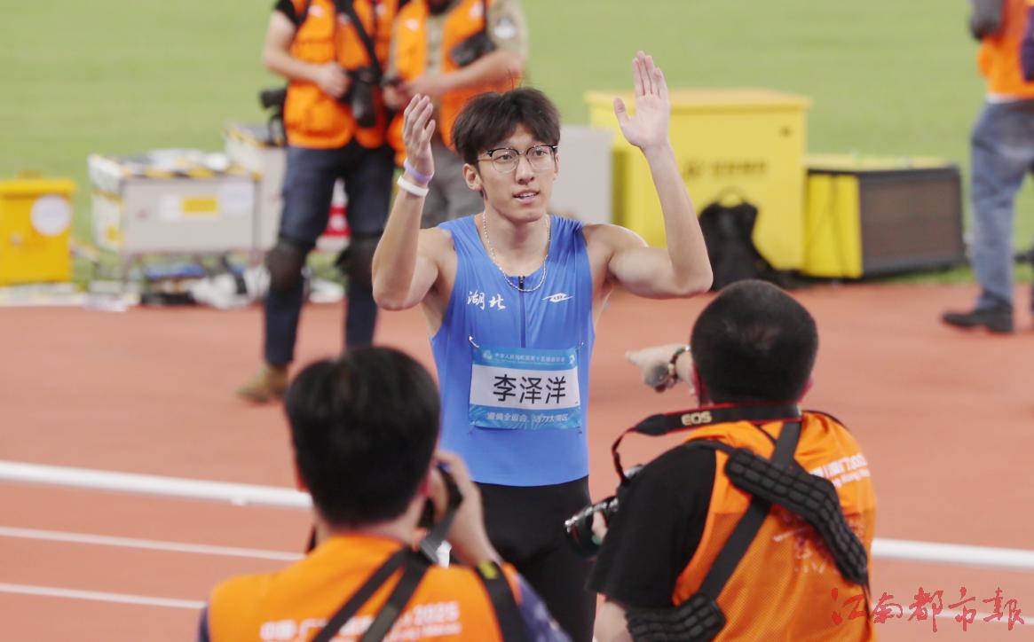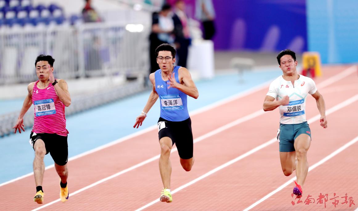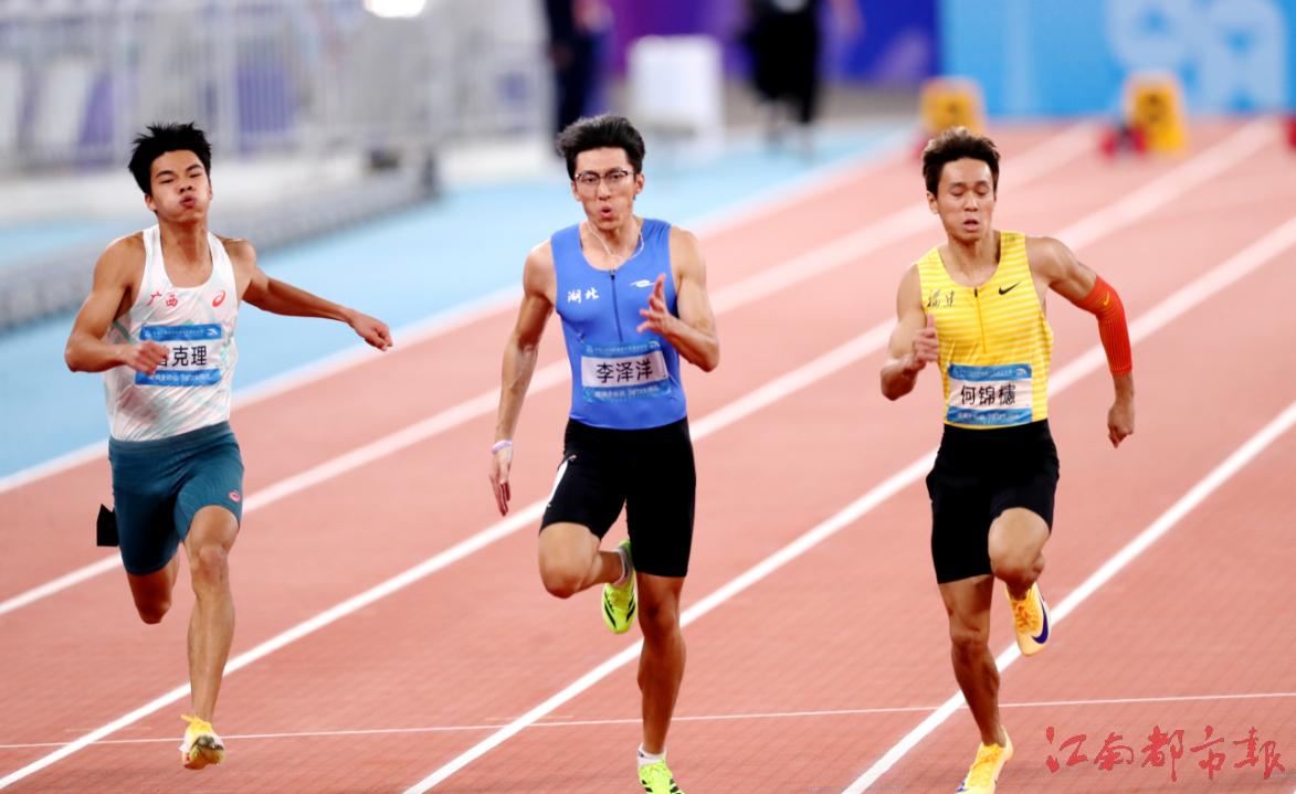 江南都市报讯 全媒体特派记者许南平摄影报道:11月17日晚上,第十五届全国运动会田径男子100米决赛中,湖北队的李泽洋以10秒11的成绩强势夺冠,出生于2000年的他也成为全运会首位“00后”百米飞人冠军。广西选手邓信锐以10秒13位列第二,福建选手何锦櫶以10秒16获得第三名。预赛中,李泽洋以10秒08的成绩刷新个人最佳,成为中国第八位跑进10秒10大关的男子短跑运动员,仅次于苏炳添、谢震业等名将。而在当晚最先进行的半决赛中,名将谢震业遭淘汰。至此,老一代飞人彻底退出舞台。