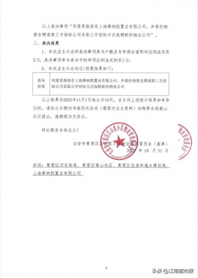 近期,江山里小区物业管理委员会依照法定程序组织召开业主大会,就是否选聘新物业服务及相关后续事宜过程进行投票表决。在此过程中,社区始终秉持公开、公平、公正原则,严格按照《民法典》《物业管理条例》等法律法规要求,依法履行对业主大会和物业管理委员会的指导与监督职责。