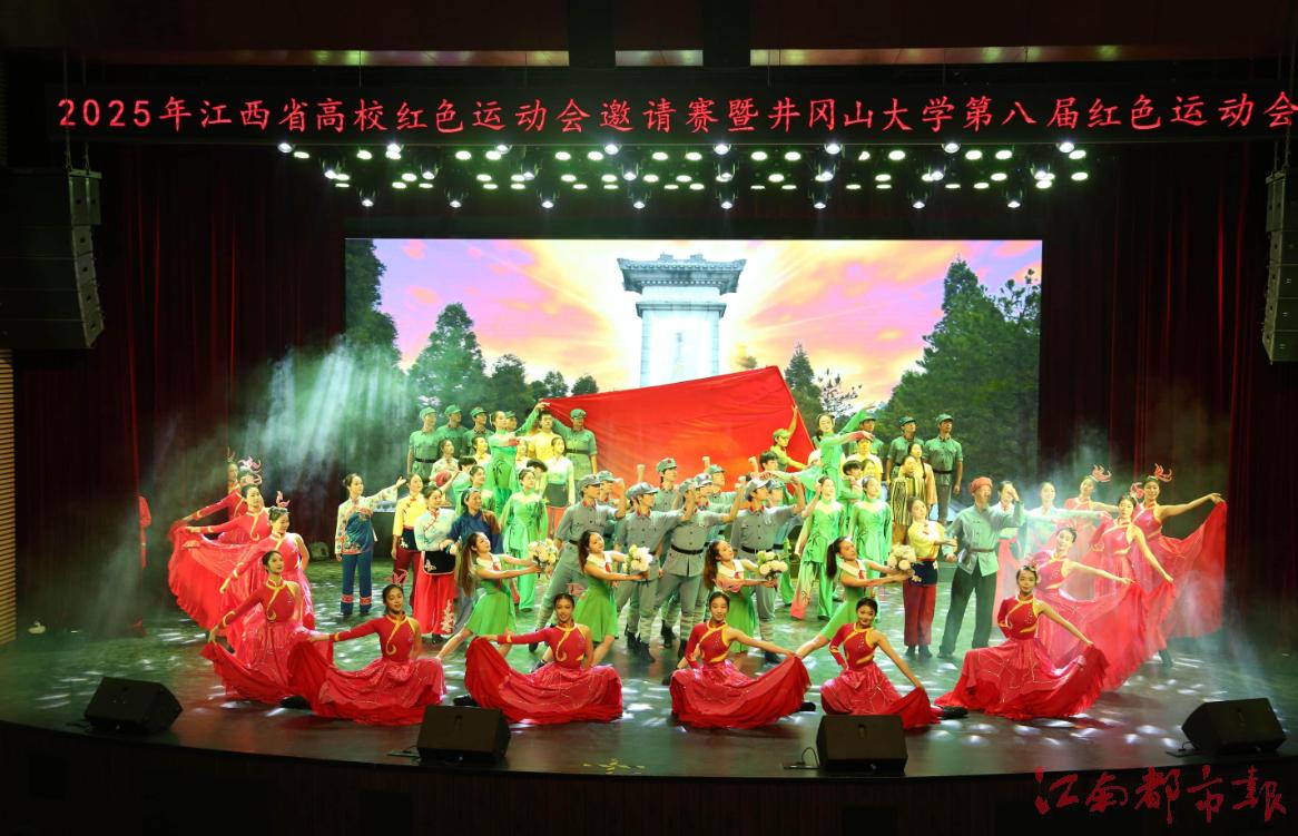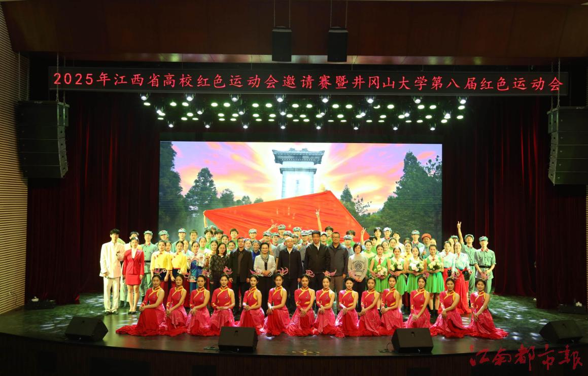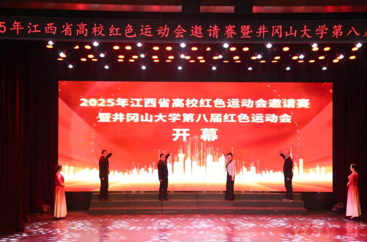 江南都市报讯 房博暄、管莉琳、谢晨苗、全媒体记者许南平、实习生汪正羽、胡南摄影报道:11月28日晚,2025年江西省高校红色运动会邀请赛暨井冈山大学第八届红色运动会开幕式在井冈山大学隆重举行。江西省学生体育协会秘书长甘萍,同济大学出版社党委书记、董事长吴为民,各兄弟高校代表,我校在家校领导肖宜安、黄族豪、肖洪海等出席开幕式。来自赣南师范大学、江西师范大学、江西农业大学、江西理工大学、江西水利电力大学、九江学院、南昌大学、南昌航空大学、 萍乡学院的全省九所高校的代表队及我校各学院师生代表参加开幕式。