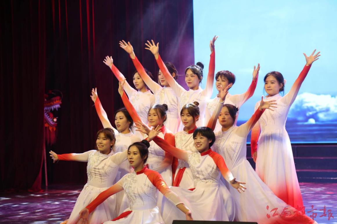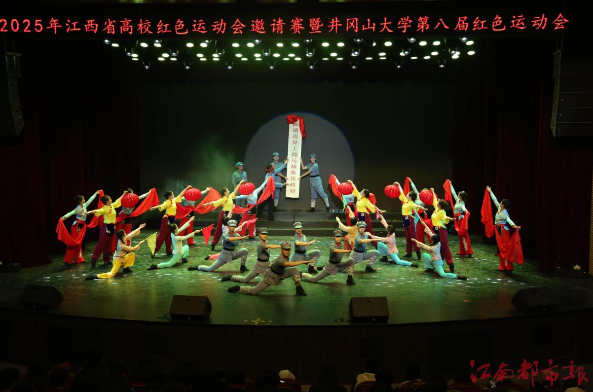 开幕式前,井冈山大学情宣传片的播放让与会嘉宾深入了解井冈山大学"以井冈山精神办学育人"的办学特色。该校体育学院学生先后呈现了排舞、舞龙、武术等节目,以青春跃动的身姿展现了新时代青年朝气蓬勃、团结奋进的精神风貌。