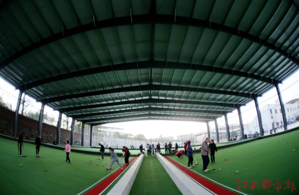 公园最大的亮点是四连片门球场,可满足比赛需求。新干县门球协会副主席徐水根高兴地说:“场地建设时,教体局征求了我们门球爱好者的意见。现在新干县打门球的有三十多个队,每队7人,总共四五百人。”对于门球爱好者来说,便利性是关键。市民邵玉兰表示:“新建的门球场地离我家很近,走路只需三四分钟。每天早上6时30开门后,我们有时间就会过来。这个场地打比赛也很方便。”
