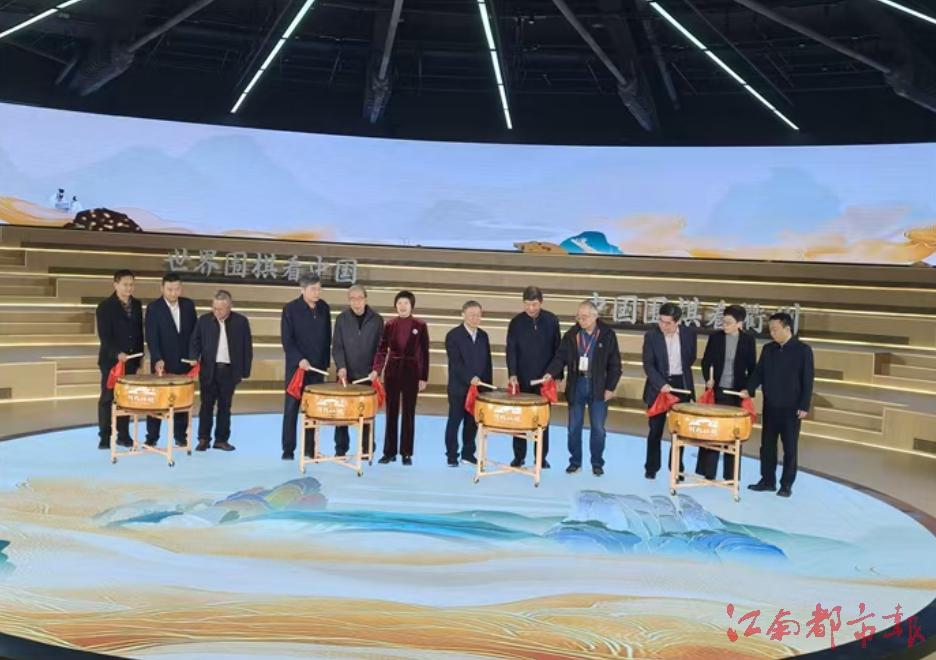 中国记协书记处书记殷陆君,中国围棋协会名誉主席华以刚、中国围棋协会副主席孙光明等以擂鼓方式宣布比赛开始。