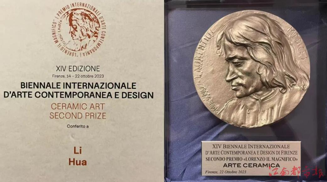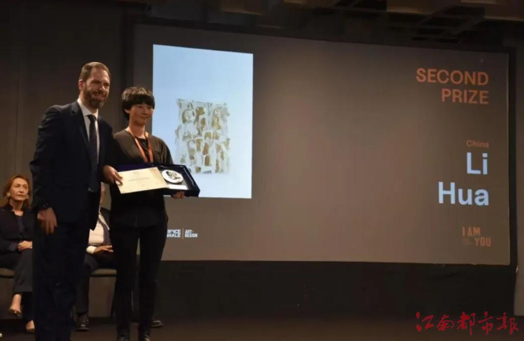 佛罗伦萨双年展艺术总监CELONA JACOPO为李婳颁发奖章及证书